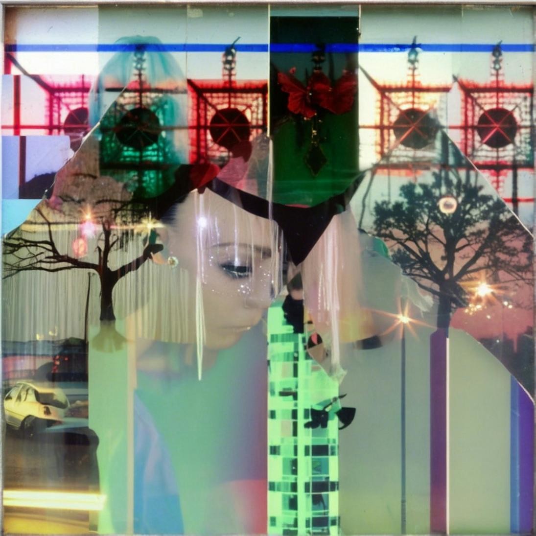 Prompt: Abstract multimedia portrait, female face, glossy metallic red textures, distressed gray textures, white, grey, red elements, fragmented mixed-media style, grayscale skin tone, high cheekbones, small lips, deep-set eyes, expressive eyes, mysterious aura, subtle hair details in gray and white, dramatic red accents on nose and mouth, modern artistic interpretation, elegance, intrigue, depth, complexity.