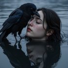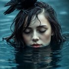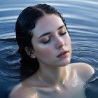 Prompt: Imagine stepping into an expansive realm awash in hues of indigo and violet, where even the air holds an air of remembrance. An ethereal beautiful East Asian young woman in profile sits in contemplation, with her head gently bowed and eyes closed. Neither asleep nor awake, she seems to tune into a sound audible only to her. Her raven black hair is elegantly arranged in a soft updo, with a handful of loose strands flowing down like muted whispers. Adorning her is an exquisite gown, tinted with deep blues and purples, and artfully embroidered with silhouetted flowers and intricate lacework which cast shadows. The garment trails along the ground like the night sky unravelling, each crease bearing the remnants of something cherished and lost. Around her, delicate flower silhouettes waver in the scene's watercolor backdrop, blooming and fading, symbolic of fleeting memories. Small flecks of gold flit around the scene, akin to the lingering sparks of things past that continue to flicker with life despite their time having passed. By EmmAI.