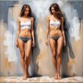 Prompt: Whismical, ethered, Colored large Stripes dress on beautiful woman with long stripes brune hair, green eyes, a beautiful capeline with small stripes on the hat, and tanned face soft blurred, with lovely makup with gradients of blue, gradients of pink and gradients of salmon color, with some waves, backgroud impregned and filled with larges stripes gold and silver mirroring. The frame is created with zentangle elements, flowers lys, orchids, made impressionism and pointillisme like picasso, van gogh, pissaro, matisse, Vasarely