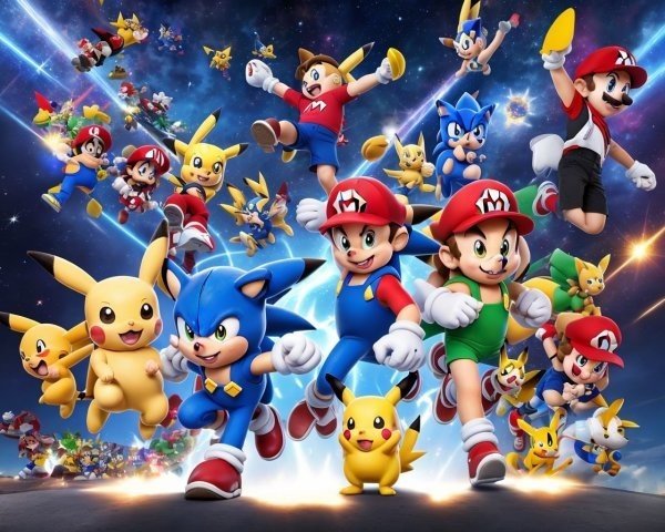 Prompt: A group of three graceful dancers in flowing red, orange, yellow, and blue dresses twirling on a mirror-like reflective surface that looks like a vast, shallow body of water under a clear sky with cirrocumulus clouds. The three dancers wear wide-brimmed hats and are captured in mid-motion, creating a dynamic and harmonious scene accentuated by their pastel dress colors and the tranquil natural background.