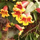 Prompt: Extremely grunge textured whimsical art, magical realism: A delicate, intricately detailed XL oak tree with filigree leaves in vibrant autumn colors like purple, gold, pink, green, and yellow, overgrown with moss and dangling vines, grows out of weathered Afropuffs. The fine roots of the tree sprout from between the Afropuffs. The background is swirly, colorful fractals flooded with sunlight. Vibrant natural colours and sandy creme tones, layered, fragmented, mist, paint splatter, beautiful vibrant colours, reflections, by various artists.