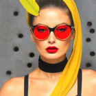 Beside her, a sleeping orange cat lounges on a sun-warmed step, surrounded by glowing dabs of yellow and crimson reflections. A small table with a glass of lemonade and a travel journal rests nearby, hinting at a slow, poetic afternoon.