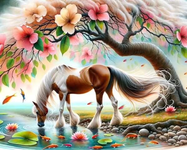 Prompt: A majestic horse gallops through a vibrant cosmic fractal glitched backdrop, surrounded by swirling patterns of stars and fractal glitch designs, blending fiery colors with deep space hues in a fantastical scene full of glitches.