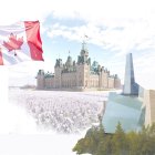 Prompt: Wet on Wet: Glowing Red Heart hangs from a Great StainGlass Arch that Bridges a Blue Sparkling River running through a City of Cathedral Spires / Nightime; many buildingswith lights on / buildings illuminated red by glowing Heart / extremely detailed.