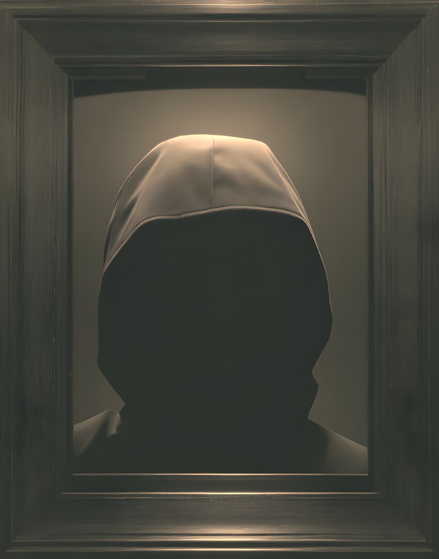 Prompt: The image is a painting with a monochromatic color scheme primarily in shades of gray, black, and white, with hints of pale blue. The overall mood is somewhat somber or mysterious due to the muted colors and the atmospheric setting.