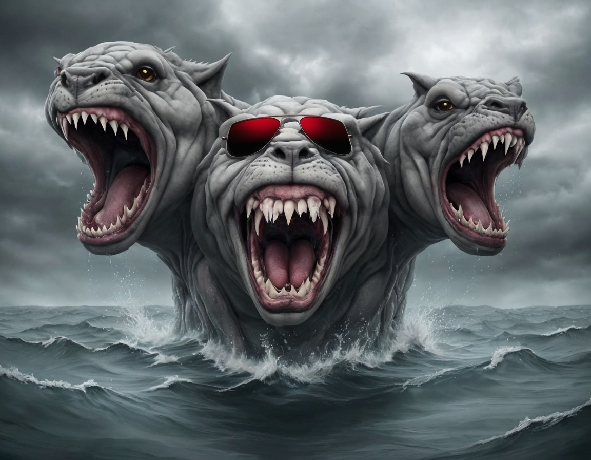 Prompt: The image is a painting of an old, rusty train engine positioned over a body of water with visible waves. The overall palette is muted, consisting mostly of grays, browns, and oranges, giving the scene a somewhat melancholic and surreal atmosphere.