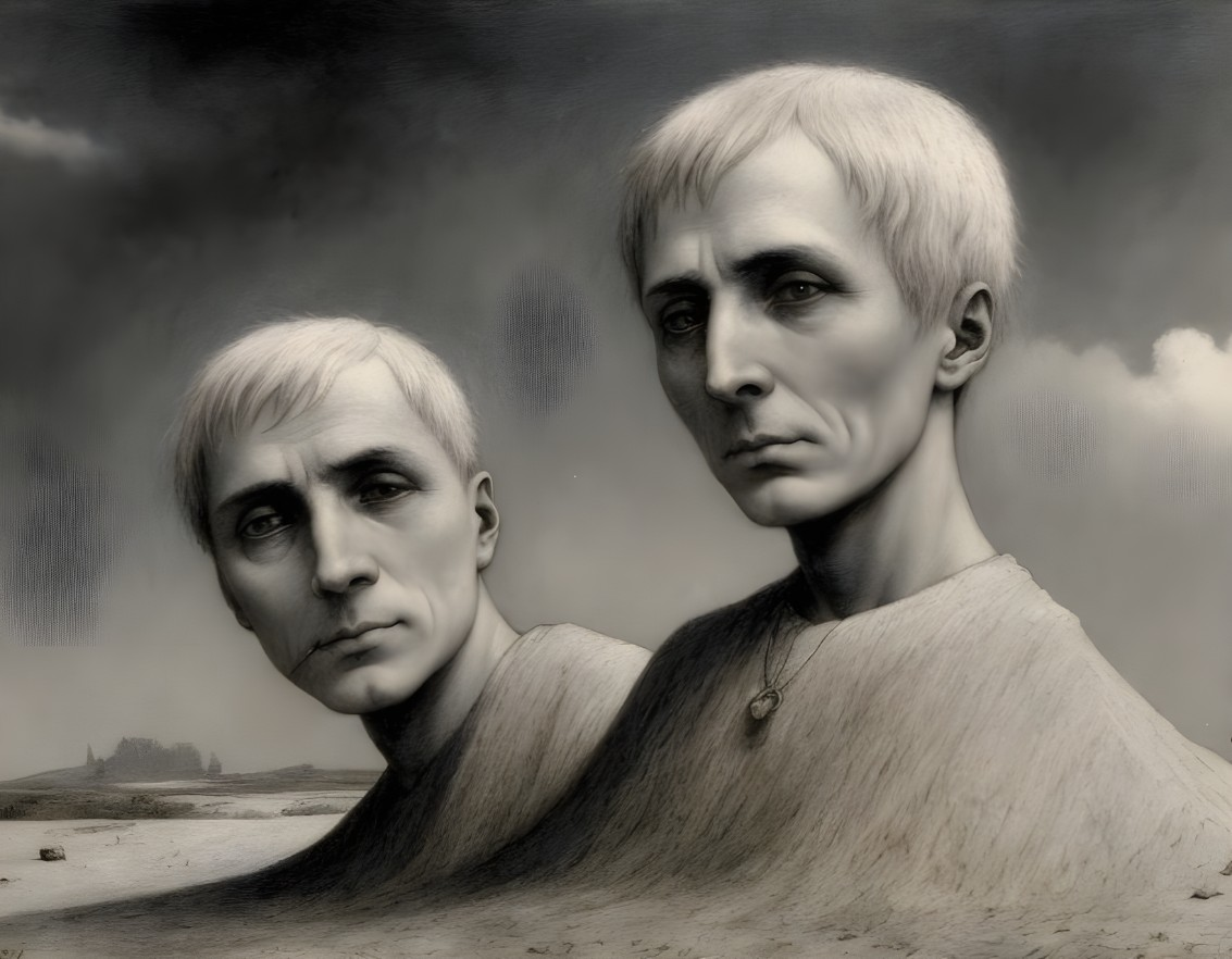 Style: The artwork is characterized by its loose, expressive lines and a lack of sharp details. This makes the image feel intimate and emotive. The use of negative space (the blank background) further emphasizes the figures.