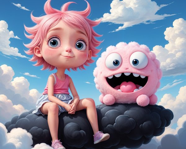 Prompt: A raw, textured artwork of an emo woman's face with closed eyes on a cracked canvas. The woman has dark hair and is wearing a pink pastel lolita dress. The background is a blurred landscape with trees and buildings. The artwork has a modern, worn appearance, with a bold, edgy vibe.