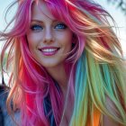 Prompt: Three young golden waving blond Caucasian beautiful medium breast women friends embracing in colorful swimwear posing cheerful on beach holidays. Group females hugging standing smiling on sunny summer time, waving at the camara