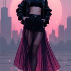 The overall mood is electrifying, dystopian, and rebellious: a fusion of anime aesthetics with cyber-gothic fashion, neon light contrasts, and a sense of raw, emotional intensity that blurs the line between performance and breakdown.