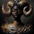 The overall atmosphere is majestic, sensual, and enigmatic: a portrait that celebrates both the permanence of form and the impermanence of energy, where a young woman embodies cultural fusion, timeless beauty, and the vibrancy of modern myth.