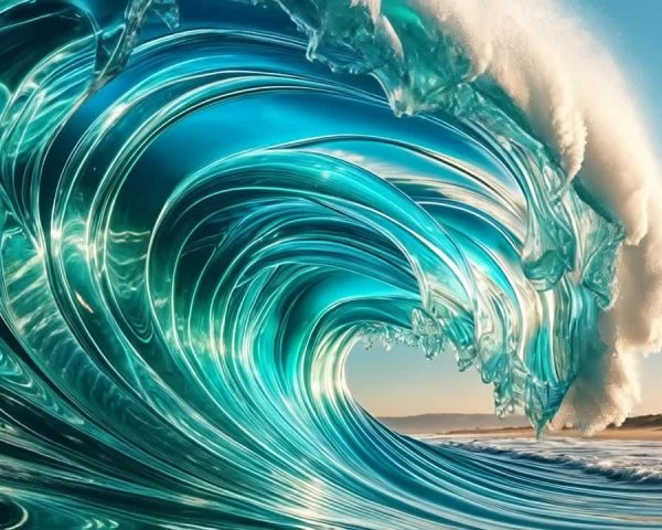 Prompt: Create an image that captures an abstract, water-reflected landscape. The scene features a vibrant blue background with rippling textures that suggest a flowing water surface. Distorted reflections of bare tree branches crisscross throughout the composition, creating a visually intriguing pattern. Sprouts of vibrant green foliage emerge among the branches, adding a refreshing contrast to the blue tones. The ripples emphasize movement and depth, creating an immersive atmosphere. The overall mood should evoke tranquility and a connection to nature, focusing on the interplay of light and color through the reflection in the water.