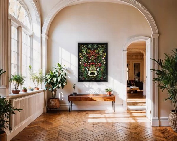 Prompt: The artwork features a macro abstract portrait centered on a Lily of the valley flower distinguished by layered textures and fragmented elements, which are unified through pearlescent color tones. The composition incorporates a distressed background with vertical streaks and metallic accents, thereby enhancing depth and contrast. This piece successfully establishes a mysterious and evocative atmosphere, skillfully merging modern abstract art with zen art principles.