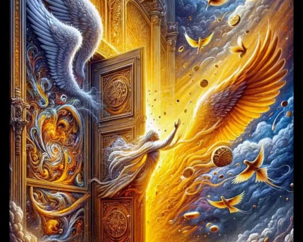 Prompt: New Dream. Surrealistic painting depicting a russet-haired young woman wearing a golden mustard-coloured dress, swinging on a wooden swing in a mystical abstract space, with a mystical ethereal haze, a mist of voluminous golden light and colour. Golden Anemones. Deep masterpiece colours dominated by brown-gold, layered textures, excellent drawing, rough, expressionist strokes and mastechin. Mix media art, expressionism, surrealism, impasto. Perfect anatomical proportions and perfect facial features. Stylisation, techniques by Esao Andrews, Brooke Shaden, Gabriel Pacheco, Hiroshi Nonami, Russ Mills.