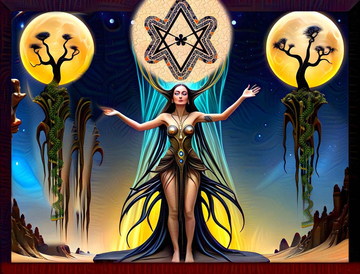 Prompt: Full moon illuminating the horizon, moonlight reflecting on tranquil waters, mysterious shadowed woman paddling a canoe, canoe floating towards the red sky and glowing moon, boulders emerging from the water, paradisiacal ambiance, oil painting with rich complexity, double exposure effect, realistic yet whimsical, splash art elements, intricate and hyperdetailed, maximalist and psychedelic style, post-apocalyptic vibe, photorealistic with a touch of fantasy, concept art quality, sharp focus capturing harmony and serenity, ambient lighting creating a mysterious glow, dynamic lighting enhancing the scene, impeccable composition, finest details in a surreal setting, ultra-high resolution of 8k, an award-winning masterpiece.