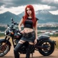 Prompt: a lewd and revealing dressed young teenage punk girl alone in the park at night, 1980s, punk style, very beautiful, colored hair, full body, front view, full body