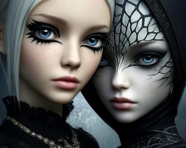 Prompt: A surreal, intricately textured portrait of a woman partially obscured by flowing fabrics and natural elements, evoking a sense of mystery and blending human features with organic motifs.