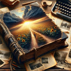 *A world of honey, milk, and chocolate. A surreal and fantastical scene of a Renaissance master, depicted as a white marble statue, painting an enormous masterpiece, a hyperrealistic landscape featuring meadows, a windmill, a blazing sun, and his muse. His muse, draped in flowing white satin sheets, levitates, resembling a marble sculpture as she poses for him. From the painted canvas, molten chocolate bursts forth, flowing into the real world, blending with milk and cascading streams of honey that spill down a grand staircase. The scene is enclosed by towering ancient columns, while the once-sterile white chamber is overtaken by the swirling fusion of colours and textures. A modern reinterpretation of an everyday classical scene, with rich surrealism and dreamlike elegance.