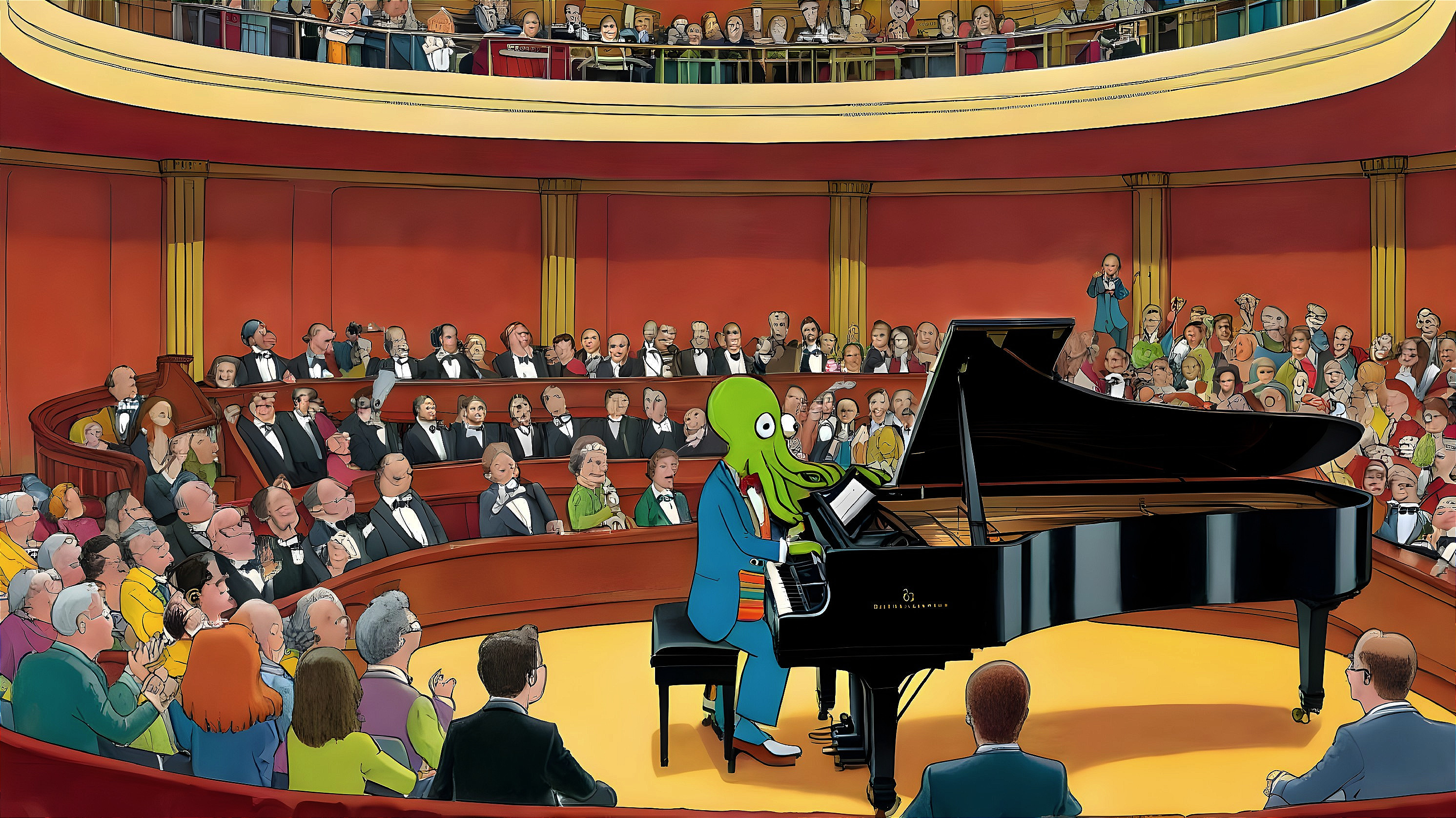 Prompt: A fantastical twilight scene on the shore of the Time Lake. Brammelwurz, a small gnome with a long white beard, red pointed hat, green robe, wide belt, and brown boots, kneels on a floating root island. He has just planted a translucent seed that emits fine glowing threads of light in all directions. Above him, starlight begins to fall, merging with the shimmering lines of time. From the light emerges a majestic white wolf, unharmed, standing calmly before Brammelwurz. The wolf’s eyes are wise and full of mystery. In the gnome’s hands glows a small crystal sphere. The atmosphere is magical, serene, and filled with suspended moments, as if time itself is holding its breath. Style by Ola Szmida – for her luminous, dreamlike blend of softness and surreal clarity in nature scenes.