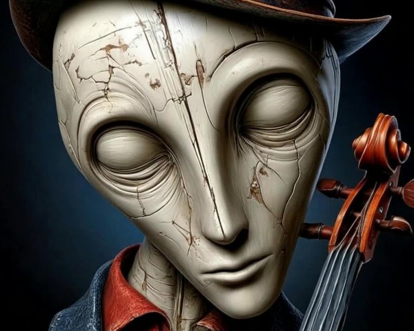 • Prompt: Patchwork infatuation, portrait in wine and gossamer, loveliest and kindest, halcyon patina, art brut, moody, somber, desaturated colors, in the style of Paul Klee, Banksy, Arthur Rackham