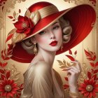 Prompt: create an alcohol ink style image of an orangutan with red hair and a poppy flower crown on it's head, looking up, surrounded by orange and red flowers, fantasy art, gothic art, beautiful fantasy art portrait, in style of anna dittman as a work of stunning digital art with black background.