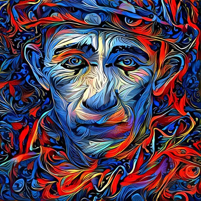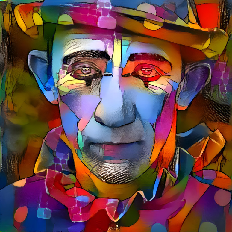 Prompt: Ton Dubbeldam style, a blurred fusion between textured messy pointillism and expressionist brushstrokes featuring a whimsical female character wearing oversized round glasses and a stylish hat. The character is depicted in crossed multi Incandescent colors, textured patterns covering their face and clothing, creating a sense of depth and liveliness. Her expression is playful and engaging, with one hand raised to her chin in a thoughtful gesture. The background features a encaustic soft textured gradient of colors yellow, orange, blue and red, enhancing the overall lively and artistic atmosphere of the image.
