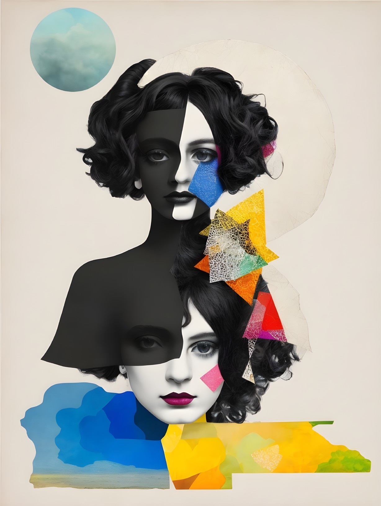 Prompt: You're someone who has a keen interest in art and enjoys creating unique pieces inspired by famous artists throughout history. Your specialty lies in crafting Dada-style collages reminiscent of the renowned artist Tristan Tzara. Your collages are known for their vibrant color palette and whimsical elements that come together to form imaginative and dreamlike landscapes.