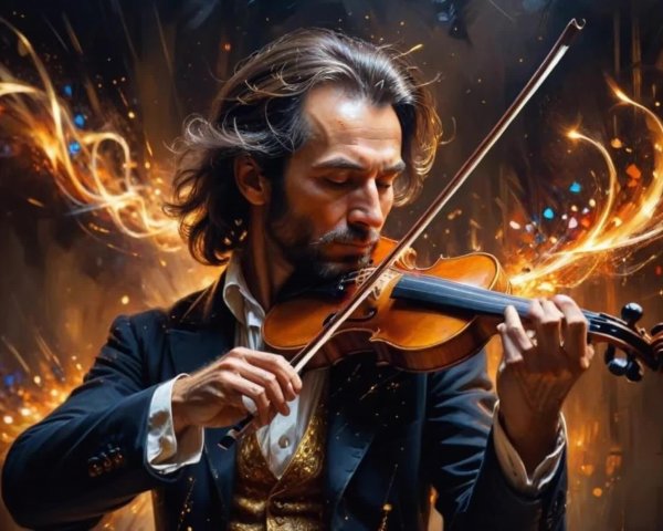 Prompt: A man sits alone on a wooden bench under a dim streetlamp on a rainy night. Reflections shimmer on the wet cobblestones. The sky swirls with blue and gray strokes — painted in the emotional, turbulent style of Vincent van Gogh.