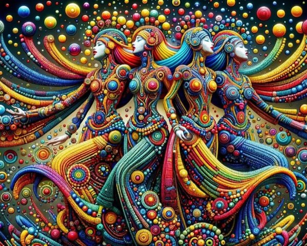 Prompt: Vibrant and eclectic art style inspired by Ed Binkley and Tim Burton, featuring a color palette reminiscent of Ho Baron and Enki Bilal, unique coloring techniques of Angelina Wrona, with lighting effects akin to Bill Jacklin. Infuse textures a la Esao Andrews, creating an abstract background with a mix of grunge paper, watercolor, chalk, and charcoal using various pigments. Blend these elements seamlessly in a mixed media composition, capturing a harmonious chaos of creativity and depth, only curves, perpendicular streamline_moderne, 3d effects, raytraced shadows, texture mapping, shadow mapping, displacement mapping, concept art by Buckminster Fuller and Stand Lee, harsh, magical, anisotropic filtering 1.7, dynamic lighting 1.7, softened edges, cel-shaded, sculpted ensuring perfect symmetry and intricate visual cohorence, luminism, plasticity 1.6, dynamic lighting effects. Magical realism, weakening. slackening, gradient coloring, overlay, layered vector art, folk-art, ambitious Shipibo-Conibo patterns merged with zentangle linework