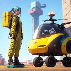 Prompt: Un cuerpo humano femenino transparente, con su alma representada como una esfera dorada en expansión. De fondo, una conexión entre el cielo y la tierra en energías vivas de colores vibrantes.
