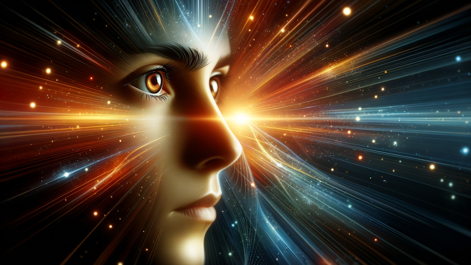 Prompt: Una persona de perfil, ojos cafés brillantes y atentos, reflejando determinación y esperanza, rodeada de una atmósfera iluminada y vigorizante.