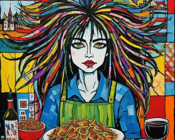 Prompt: (((Masterpiece, close up))) A dynamic impressionist coarse impasto painting and ink drawing in a scratching, splashing, blotting appeal, irregular stroke, squiggly line, evocative, splatter, overspray of color