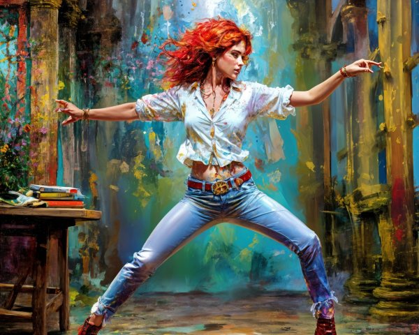 Prompt: Long exposure photography, skinny tween ballerina with neon orange glasses and glow-in-the-dark purple leotard and tutu breakdancing in a pitch black room. Low angle. Beautiful, vivid, dark background. Silhouette, dark figure, face not visible.