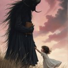 Prompt: A surreal, highly expressive watercolor artwork: a central ethereal humanoid presence, gracefully dressed in flowing watercolor-painted robes and translucent veils, blending into the layers of the scene. The figure is painted in layered washes of translucent tones — deep indigo, crimson, gold, and turquoise — with edges bleeding delicately into the surrounding colors. The fabric ripples like liquid paint, decorated with abstract floral and celestial motifs. The background is an elegant, dramatic explosion of large expressive brushstrokes, mixing stormy blues and shadowy purples with radiant golden and pink highlights, creating a striking duality between darkness and light. Misty shapes and surreal details emerge in the distance, painted loosely in the style of John Singer Sargent’s fluid washes, the atmospheric drama of J.M.W. Turner, and the elegant ethereal abstraction of Agnes Pelton. Highly detailed yet airy, wet-on-wet watercolor technique, masterpiece, 4K, expressive and elegant.