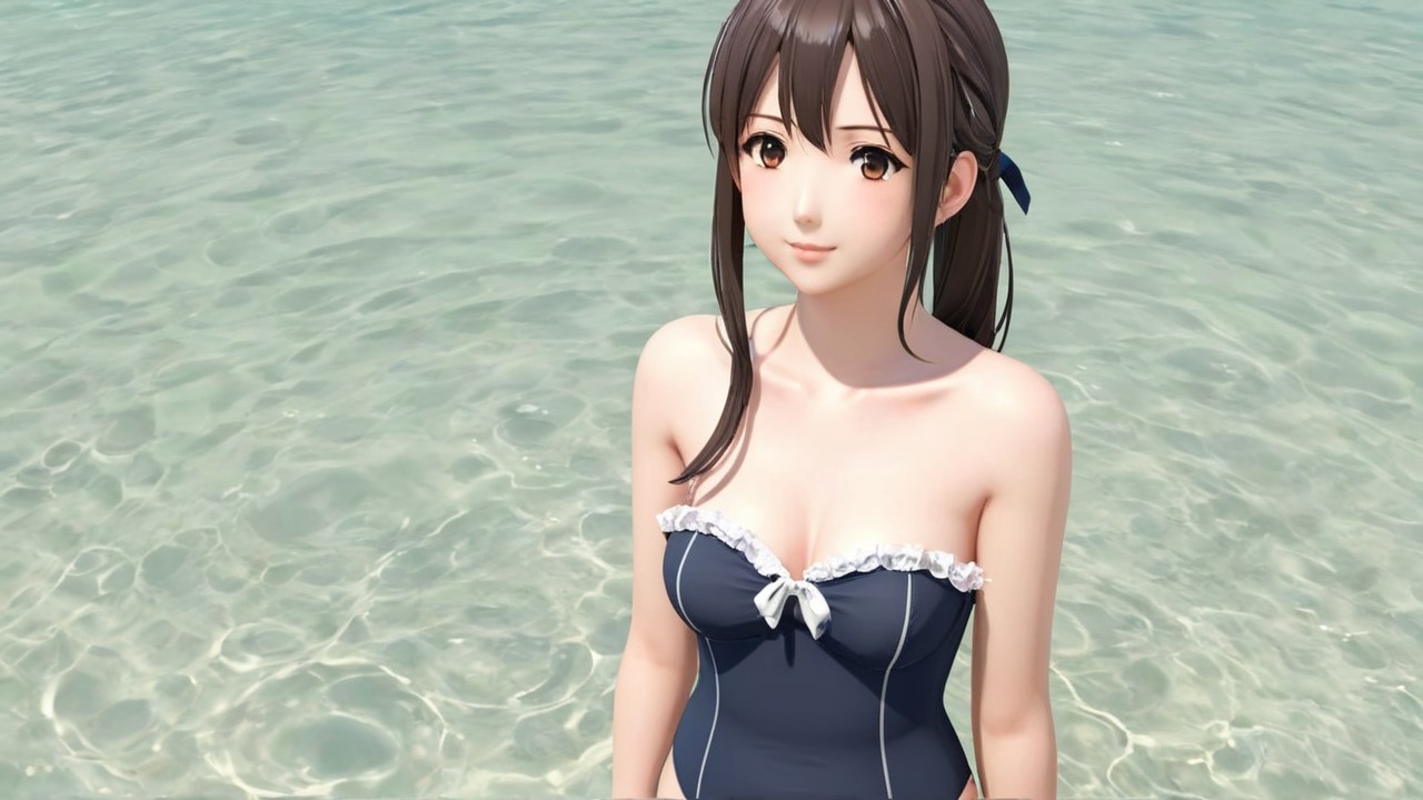 • Prompt: cute anime girl in a shabby strapless swimsuit
