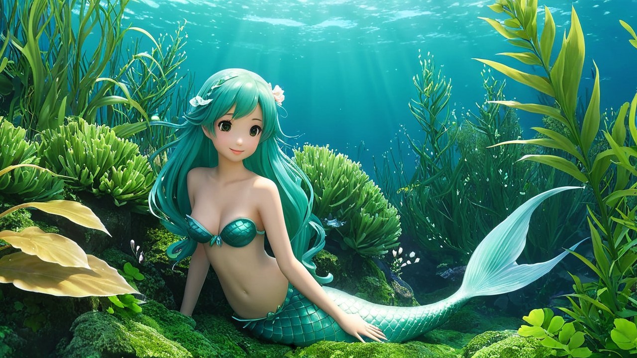 • Prompt: cute anime mermaid holding a plate of shrimp scampi