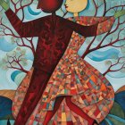 Prompt: Create a Stylized Oil enigmatic Painting.in Impasto Style with Multilayer upper layer with glaze effect. Create a captivating mystical enigmatic work in the style of an art object, predominant sepia dirty colors : grey and light muted torquese accent coral color glow edges outlines, gradient blue hues Use different sizes of brushstrokes and highlights, contrast shadows, step gradient hues penumbras and reflections. Medium shot image, "let me see your inner world touching sacred feeling in mind", s the atmosphere is calm and serene, moody chiaroscuro lighting, contrast hues, high-resolution, perfect composition, artstation concept, sharp step gradient, optical illusion effect. Close up. Art avant-garde style remeniscent avant-garde artist style of K. Petrov-Vodkin and N.Goncharova. Twilight. Muted hues, masterpiece, stunning, vivid, fluidity, enigmatic, visual poetry, high-resolution, optimal clarity, realism, serene ambiance.. Mixed light varying the thickness of the lines and colors to convey volume and multidimensionality. Oil on canvas, very rough palette knife, very hard brushstrokes, light and shadow, penumbras and reflections. Gorgeous voluptuous, artwork by Ian Miller, glaze effect, high quality, detailed, confident, sharp contrast shadows, step hues gradient, realistic reflections shadows. 8k