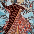 Prompt: Painting Painting Painting Painting Painting Painting Painting oil on canvas, ink and pen, brush strokes Surrealism, minimalism, oil painting,. Testural background depicting a grey-dark light brown wall with peeling and cracks on the full screen. Misty diffused soft light on the dark background. Turning to the wall, with her back to the viewer, stands a young slender woman, barefoot, barefoot in an old turquoise threadbared long dress,. The girl's hair is dark blue, disheveled of which in the imaginary wind gradually turn into a chaotic flock of small blue birds that fly out the open window. mystical light and glow, poetic, minimum of elements, maximum use of light play, tonal transitions and paint effects. The style of Picasso, Claude Monet and Jan Vermeer. Magical, dreamlike, bold brushstrokes, textured oil on canvas, dynamic splashes, Van Gogh essence in the center of the wall a big large open window, and nothing else. Full size format, no cropped edges, no frames, no text or copyright.