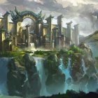 Prompt: An abstracted, colorful, yet Art Deco influenced portrait constructed out of octagonal voxels of abald eagle, facing forward with it's wings open. The multi-layered fractal feathers are interwoven with mystical symbols, and sacred geometry in three-dimensional layers over a background of a 3d fractal jungle.