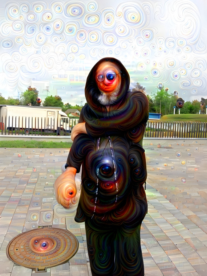 Prompt: In Karol Bak style create the best AI-generated render of a holographic 3D model of an image of one gnome. The image consists of four quadrants: the top left quadrant is mucus blue, the top right quadrant is bile green, the bottom left quadrant is blood red, and the bottom right quadrant is black.