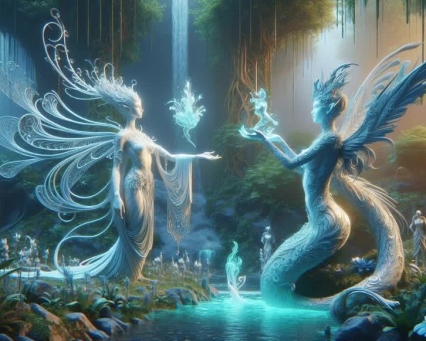 • Prompt: Water Never forgets. Some of her memories are frozen, while other memories are fluid and always flowing. Beautiful sacred geometry underlies the composition of this image. Features a full pallet of pastel colors. Vargas, Arttgerm, and Elvgren