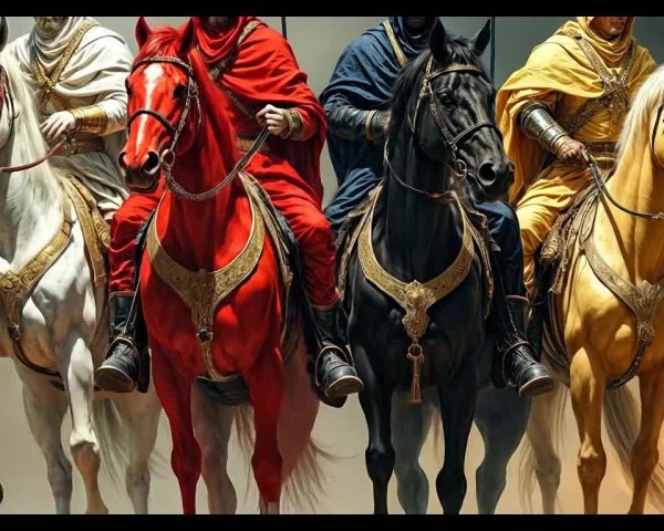 To the right of the image, a three-dimensional skull emerges from the puzzle wall, adding a hint of mortality or danger to the scene. Three eagles soar in the sky, one directly above the rider as if escorting him on his journey, with their feathers intricately detailed, capturing the majesty and freedom of the birds.