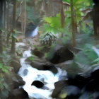 • Prompt: An abstract digital illustration featuring intricate, blooming floral patterns with vibrant colors, which seem to emerge and intertwine, creating a mesmerizing and surreal texture. The flowers form organic shapes that evoke a sense of grace and fluidity. Dramatic lighting highlights the delicate details of the patterns, creating a dynamic contrast against a dark, minimalistic background in a painterly artistic style.