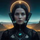 • Prompt: mysterious woman in a surreal, dystopian landscape,whimsical dark clothing with lace patterns,glowing anomalies and distorted elements;influenced by Bosch,Goya,highly detailed,8K resolution,hyper-realistic,vertical composition,rich jewel tones,analog distortions,immersive dark fantasy atmosphere,artistic chaos,ethereal presence