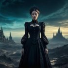Full Body Portrait of Woman in Gothic Victorian Dress