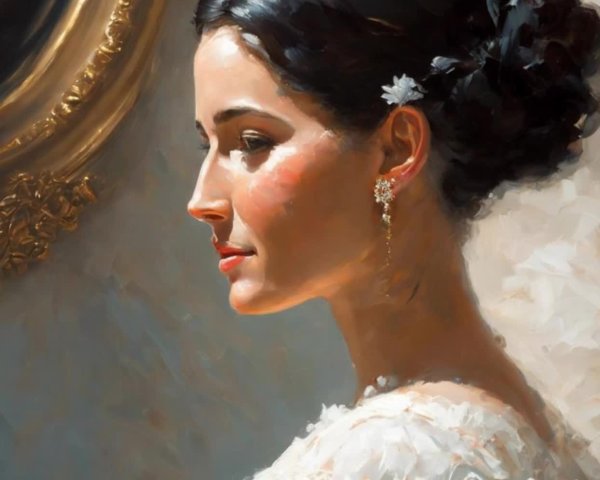 Her gaze wavers between resolve and remembrance. Sweat gleams like powdered gold. Hair crowned in molten halo. For a moment she becomes mirage—heat given shape, patience personified. Beneath, stone cracks faintly, as if planet exhales. The canyon holds its breath with her.