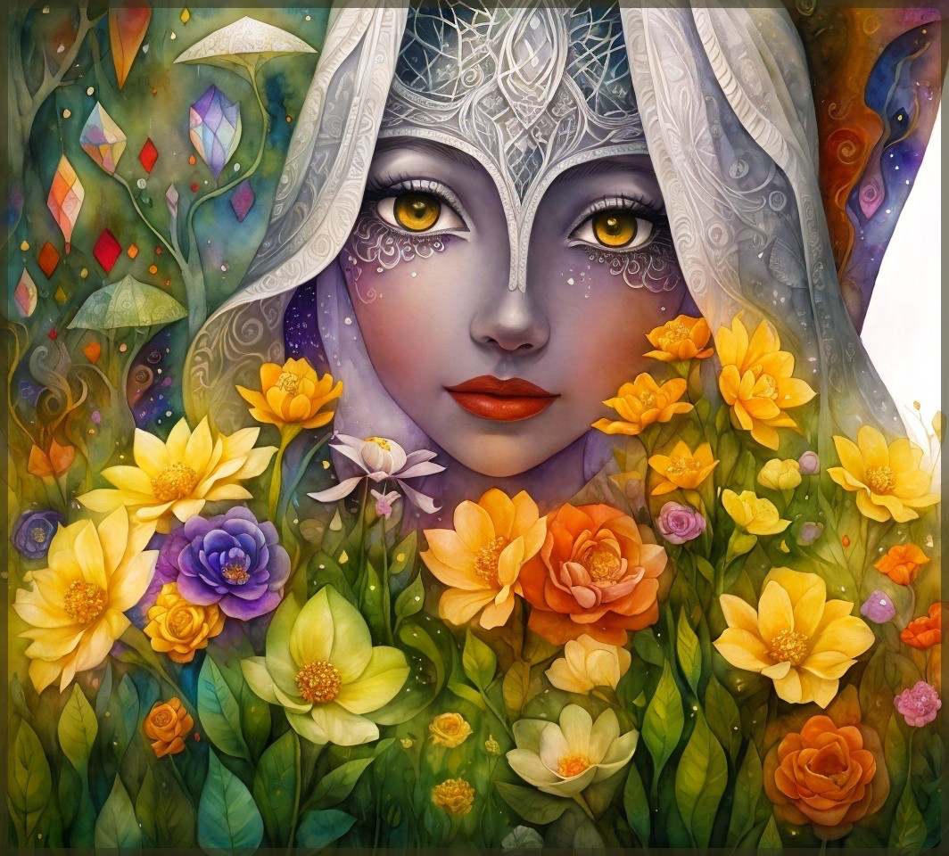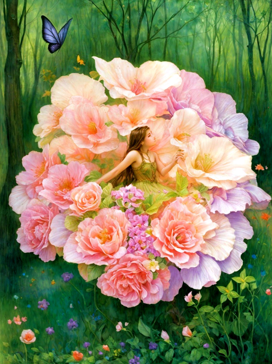 Fairy in Enchanted Forest Surrounded by Flowers 84w