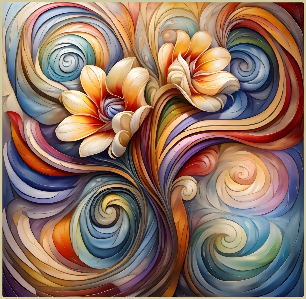 • Prompt: New art, large flowers with vines, splash art, short heavy impasto oil palette knife, not too busy, fill the canvas with shrink to fit objects, objects should be identifiable