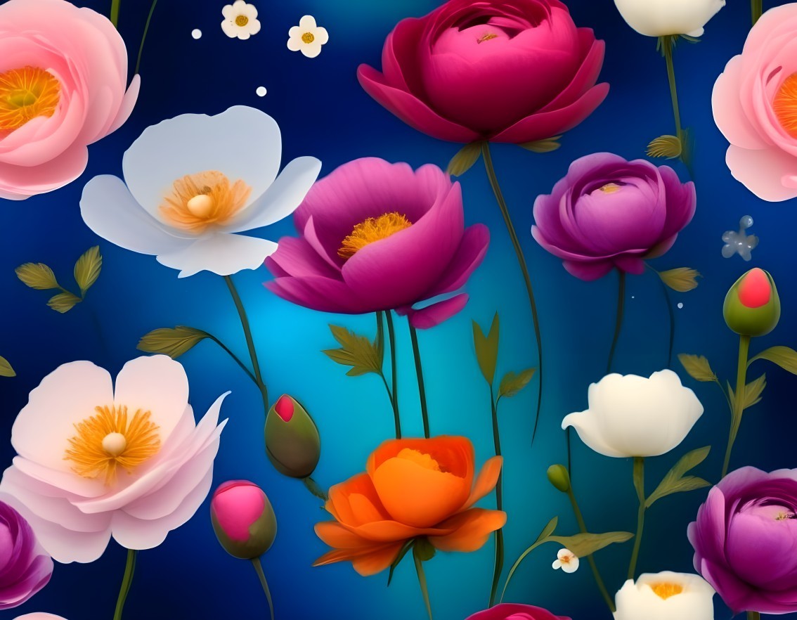 Colorful Flower Illustration on Blue Background
