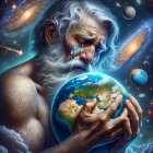 The overall mood is majestic and whimsical, capturing a frozen moment where time, the cosmos, and the ocean unite in an endless dance.